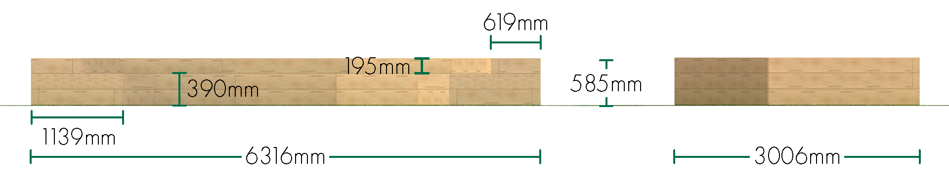 Length: 6316mm Width: 3006mm Tier 1 Height: 390mm Tier 2 Height: 585mm