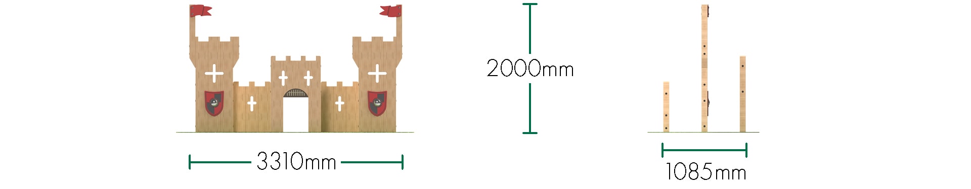 Children can play behind, hide inside and run around the castle themed sleeper play scene. Suited to role play development and imaginative play it’s the perfect addition to enhance a castle themed playground.