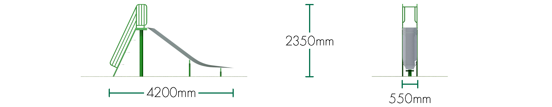 Length: 4.2m Width: 0.55m Height: 2.35m Free Fall Height: 1.6m