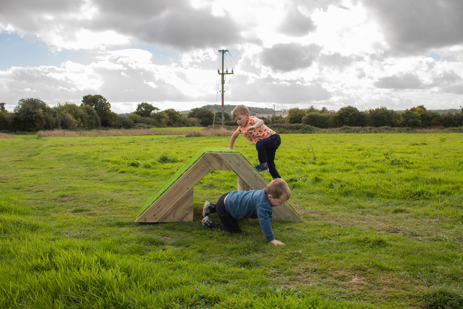The Mini Mountain is designed for small explorers who love to climb and crawl. It is topped with artificial grass, which protects little knees.