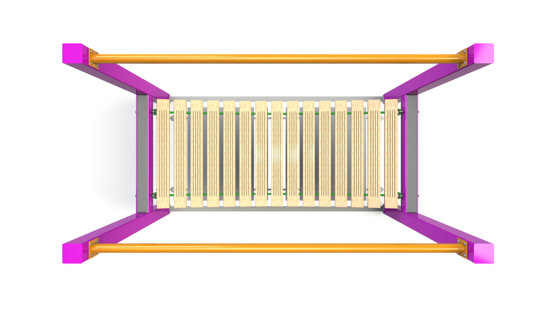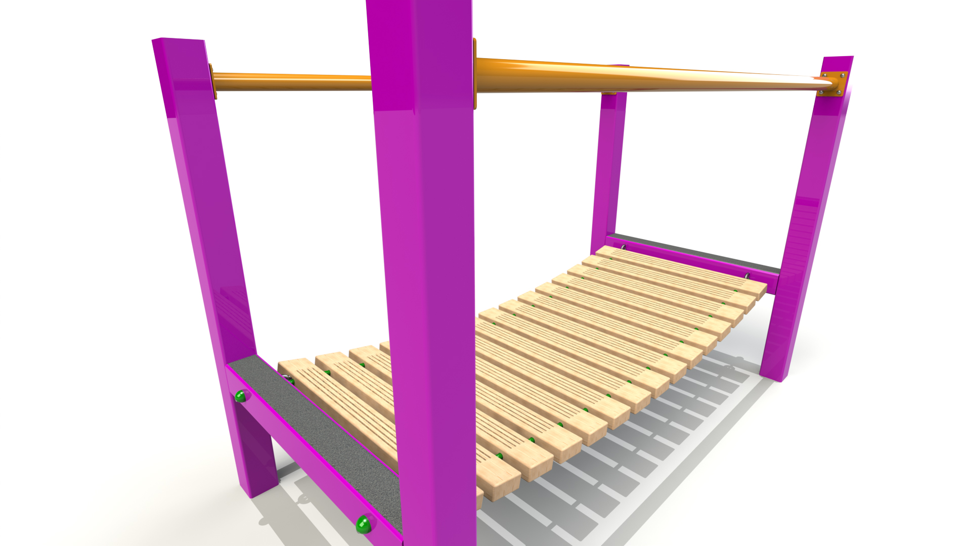 Steel construction with none slip coating, steel core ropes and timber slats