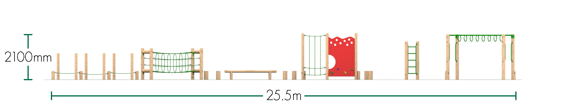 Rope Tunnel, Climb Ladder and Tarzan Ring Beam have a free fall height greater than 600mm.