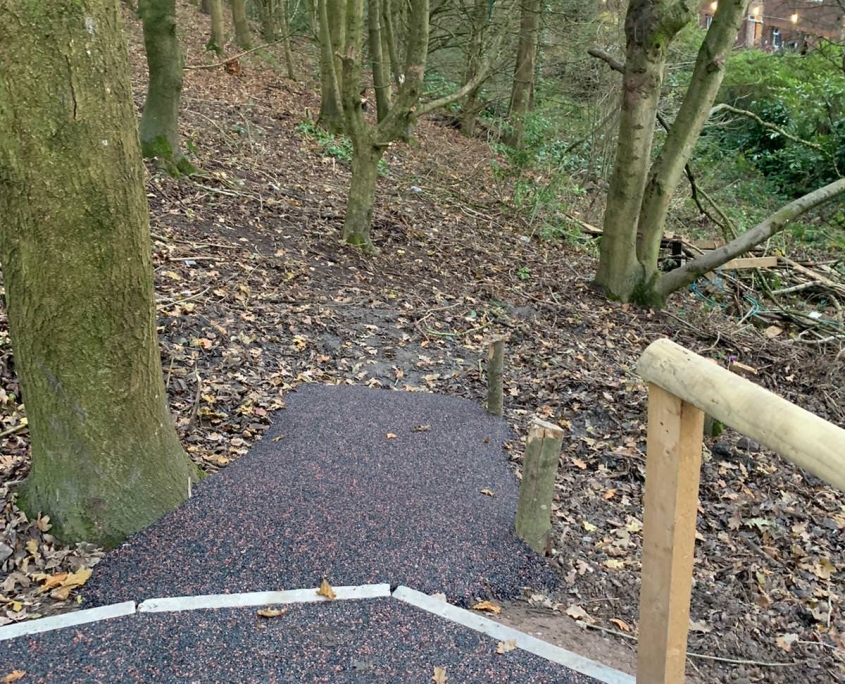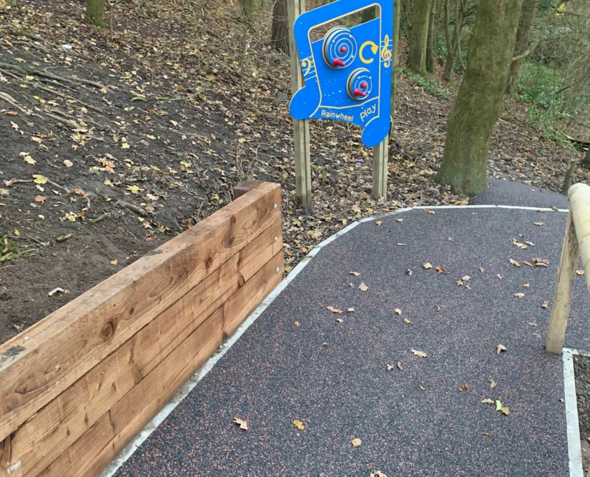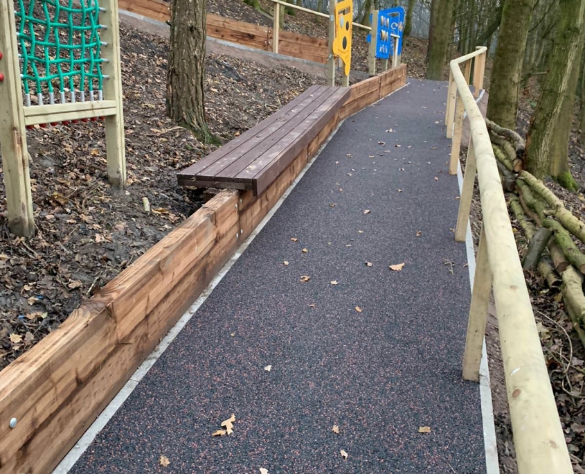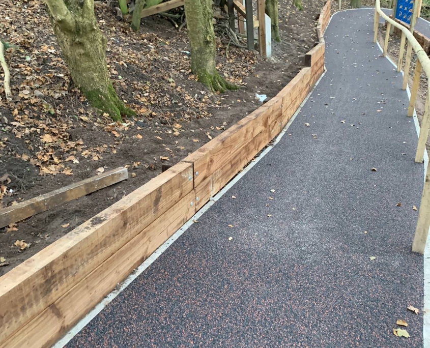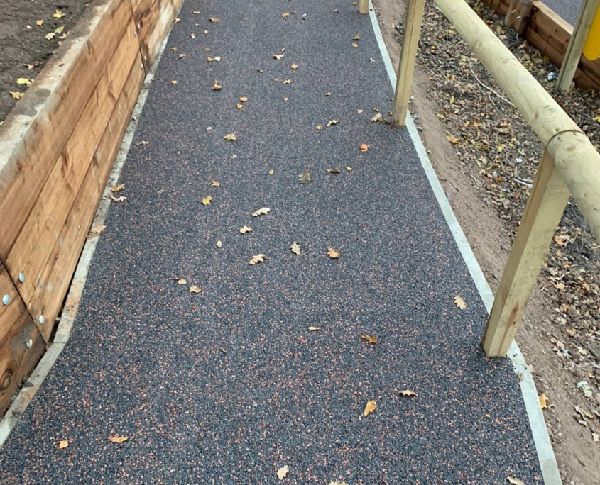 Elite Playgrounds were asked to surface over 1,100m2 across two areas, 3 colours of Wetpour plus intricate inlaid designs…